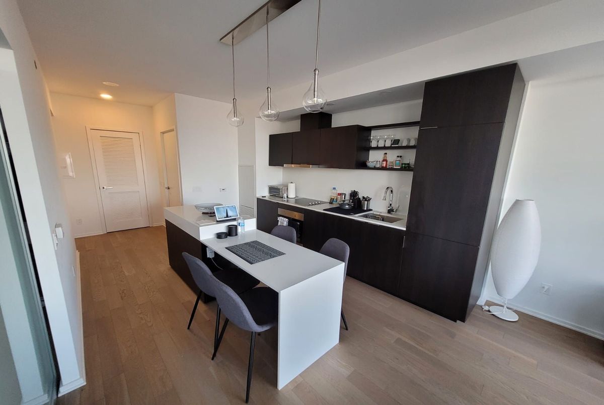 Executive rental at Monde Condos. Stunning 1+1 Bedroom suite with breathtaking Lake Ontario & city views. Great open layout boasting 9ft ceilings, Floor to ceiling windows, laminate floors throughout and ample sized balcony. The kitchen features a centre island w/breakfast bar, integrated appliances, and plenty of cabinet space. Sleek 4pc Bathroom. Resort Style Amenities Inc: Rooftop Infinity Pool, gym, hot tub, Sauna, steam room, 24 Hour Concierge; Billiards Room, Guest Suites, & Party room. *Unlimited Fibre High Speed Internet Included* Steps to Water's Edge Promenade, TTC, Union Station, Waterfront Trails, Sugar Beach, Loblaws, St Lawrence Market, Financial District and more. Walkscore 95, Transitscore 100 and Bikescore 89! Tenant is responsible for Heat, Hydro & Water.