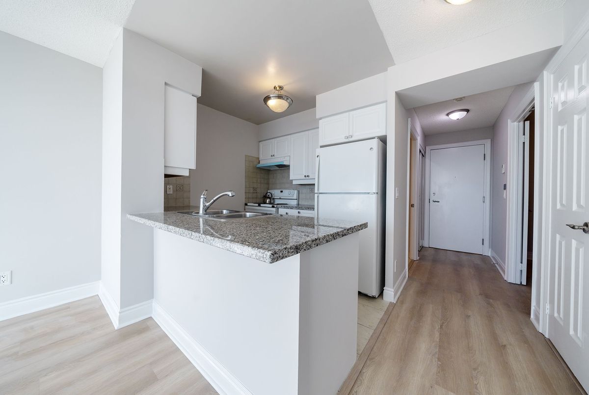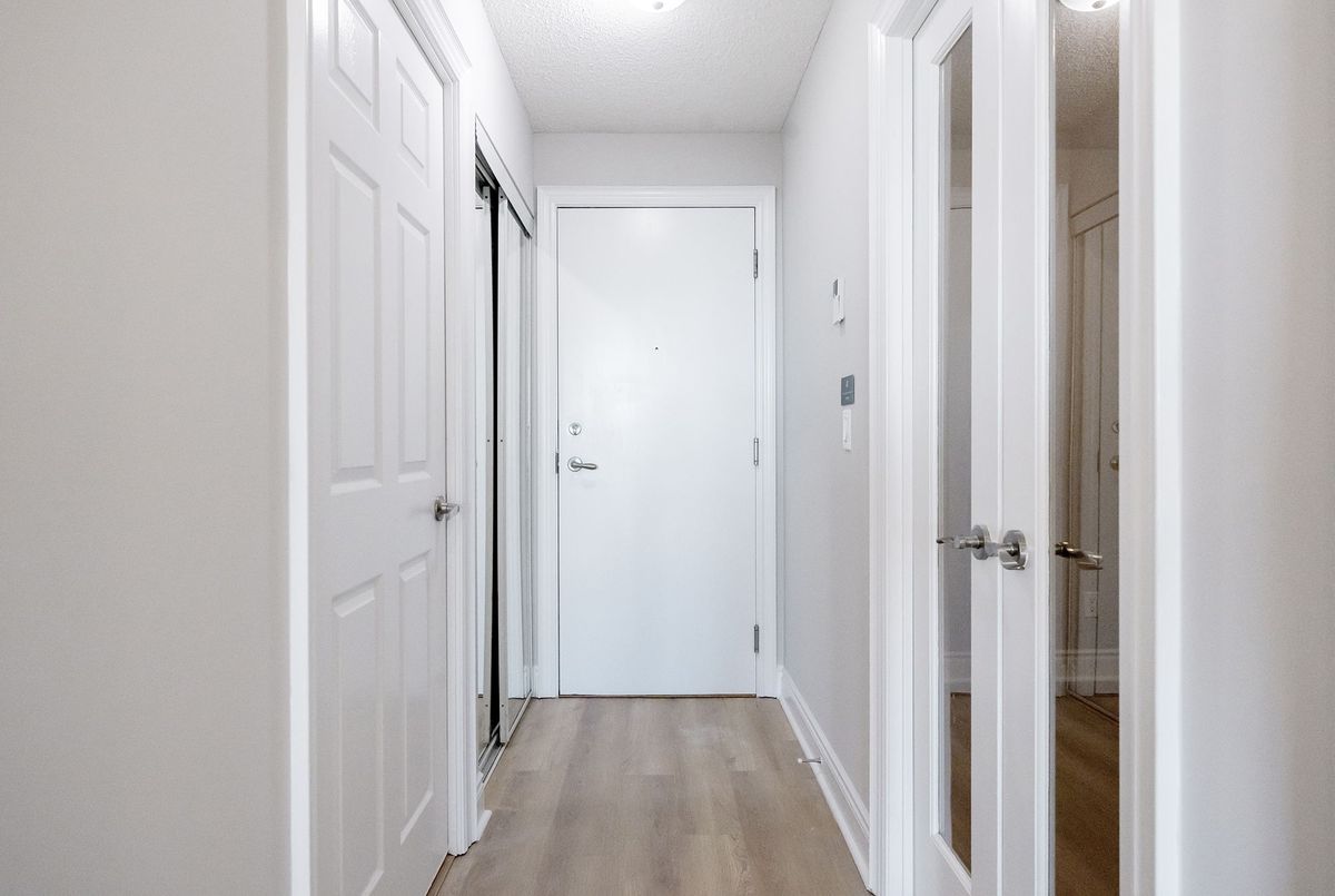 Prestigious Meridian Condos by Tridel! Renovated from Top to Bottom 640 Sqft Functional Open Concept 1+1 Layout w/ Gorgeous Unobstructed West View Facing City/Park, Den w/ Door Can Be Used As Second Bedroom. Upgrades Include New Kitchen w/ SS appliances, New Premium Vinyl Flooring Throughout, Freshly Painted, Bedroom Smooth Ceilings & Updated Bathroom and More. 1 Parking & 1 Locker Included. Move In Ready!!!