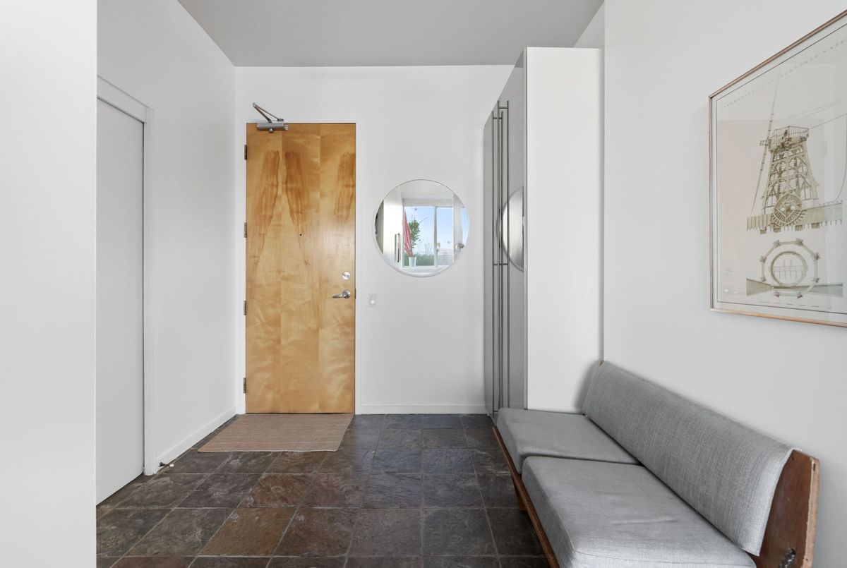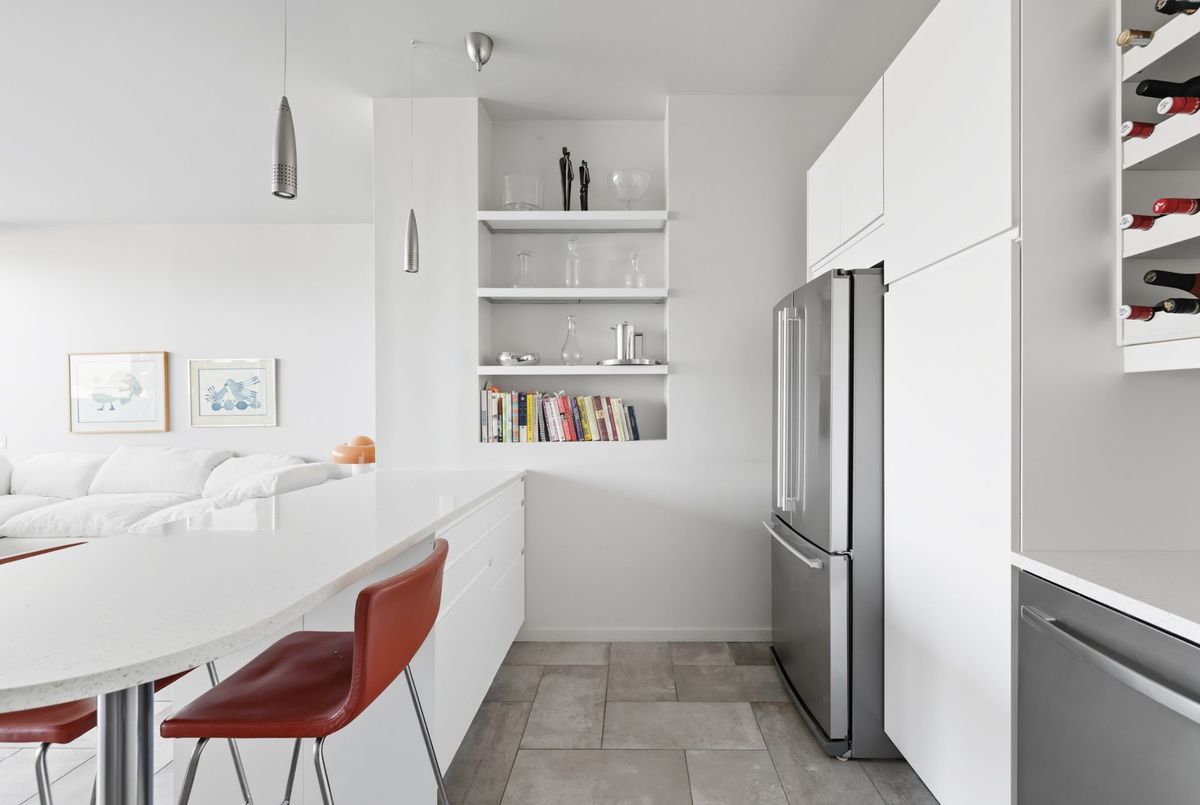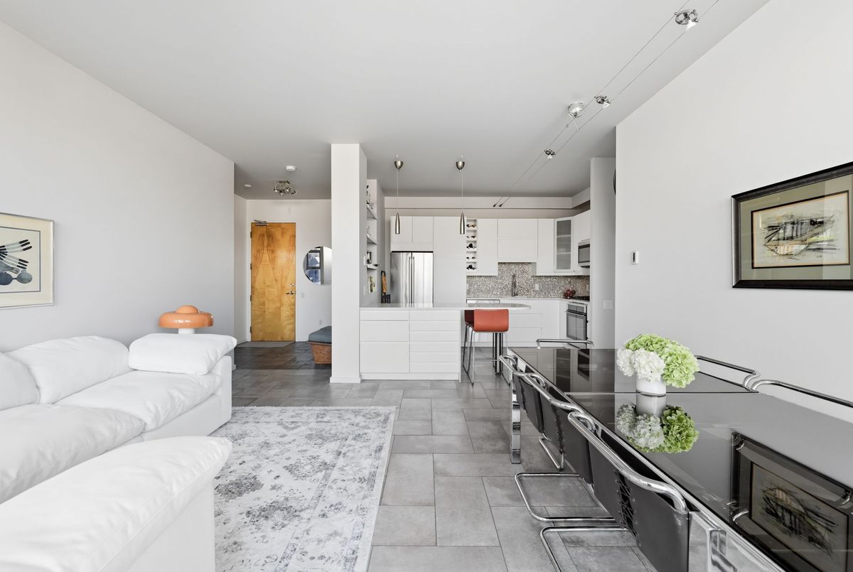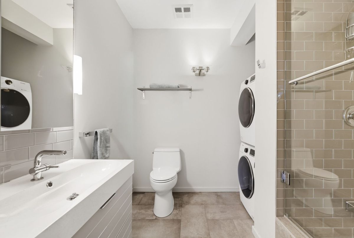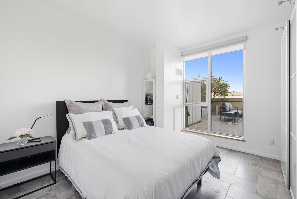 In the vibrant heart of Kensington Market, this rarely offered, sleek 2-bedroom, 2-bathroom Penthouse offers the perfect balance of energy and serenity, featuring a rare 622 sq. ft. terrace with peaceful north-facing views.Inside, floor-to-ceiling windows flood the open-concept living and dining area with natural light, while heated stone floors and lofty ceilings create a modern, seamless flow throughout. Enjoy the comfort and cost-savings of in-floor heating year-round, and take advantage of permitted BBQs on the incredible private terrace perfect for entertaining or unwinding in style.A spacious foyer with decorative slate flooring sets the tone for this thoughtfully designed urban retreat. The renovated kitchen transitions effortlessly from the living space and showcases a designer ceramic backsplash, stainless steel appliances, an eat-in breakfast counter, and ample cabinetry for stylish everyday living.Perfectly positioned on either side of the living area, the bedrooms ensure privacy and comfort. The primary suite easily accommodates a king-sized bed, with wall-to-wall closets, a walk-through dressing area, and a renovated spa-like 3-piece ensuite with in-suite laundry. The second bedroom, currently used as a family room and office, features custom built-in shelving, floor-to-ceiling windows, and access to a second elegant 3-piece bath.Residents enjoy access to a beautifully landscaped courtyard, a spacious party room, and secure underground parking with locker. With a Walk and Bike Score of 100, everything is at your doorstep from trendy cafes, restaurants, and boutiques to the University of Toronto, MaRS Discovery District, AGO, Trinity Bellwoods, and Queen West.