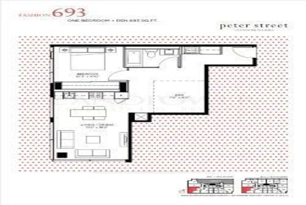101 Peter Street is a Condo Property located in the city of Toronto. 101 Peter Street has been listed For Lease at $2,500 since Mar 24 2026. This Condo Apartment has 1 bedrooms, 1 bathrooms and is 600-699 sqft. Situated in Waterfront Communities C1 neighbourhood , with the nearest intersection being PETER ST & ADELAIDE ST W.