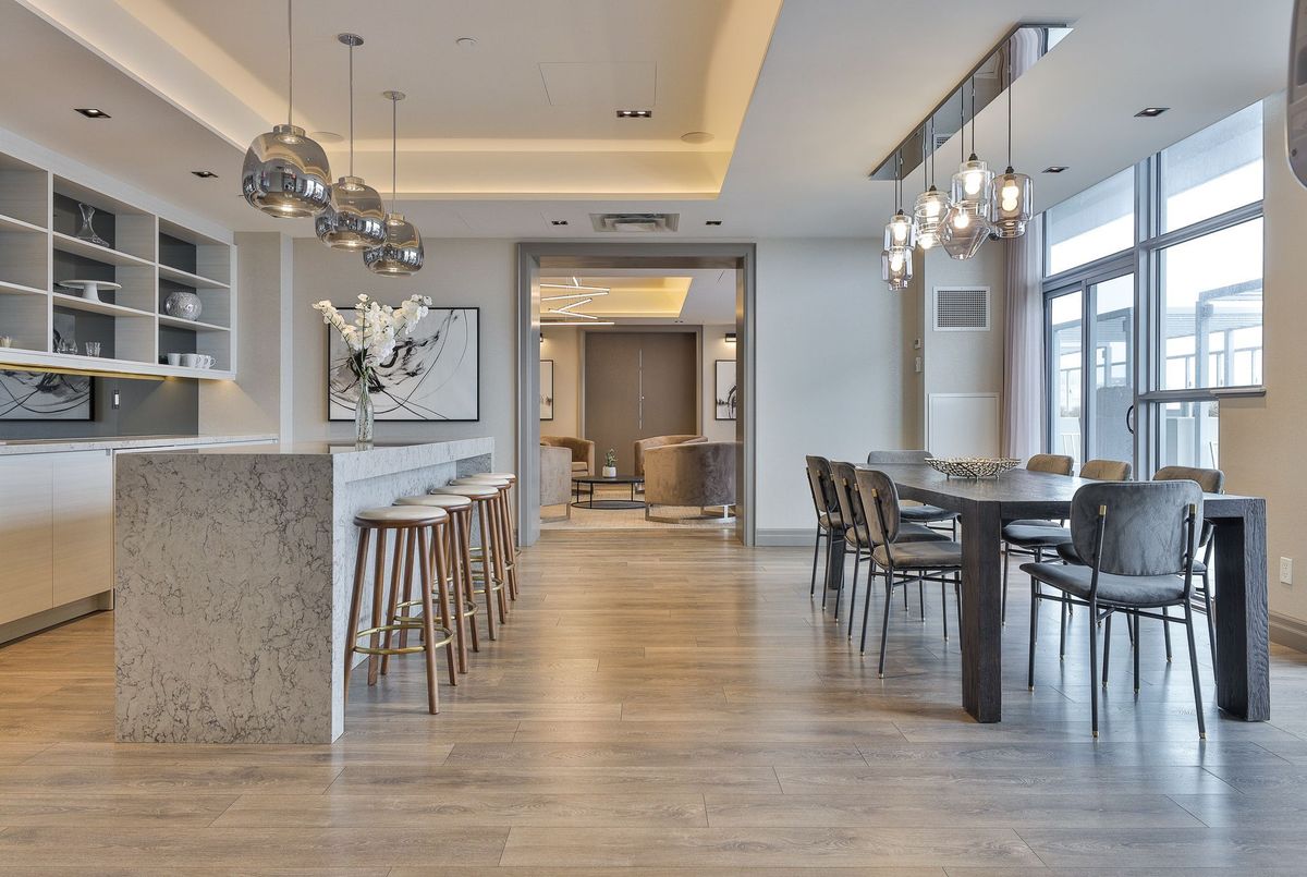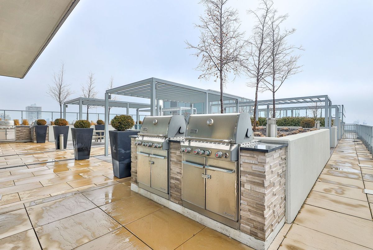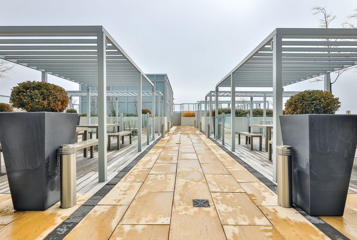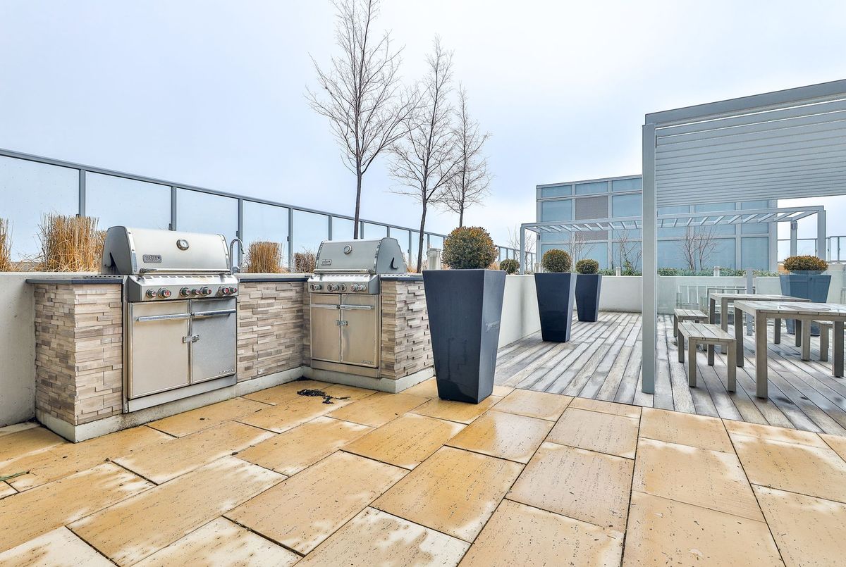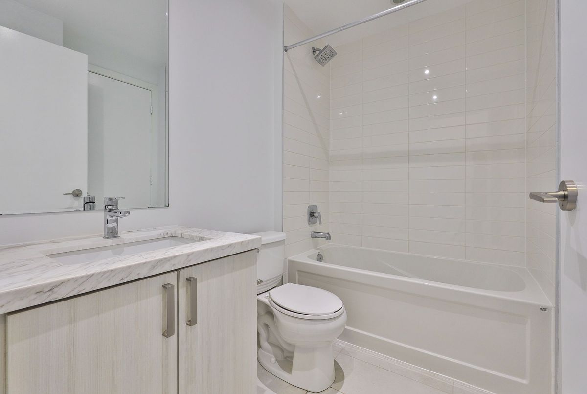 Rise above it all at RISE Condos - where elevated design meets effortless urban living at St. Clair & Bathurst. This pristine one-bedroom suite offers approximately 585 sq. ft. of thoughtfully designed interior space, complemented by a generous private balcony with a gas BBQ line-perfect for seamless indoor-outdoor living. A west-facing exposure floods the suite with natural light through floor-to-ceiling windows, creating a warm, inviting ambiance from day to evening. Inside, contemporary finishes define the space, including engineered wood flooring throughout and a beautifully appointed kitchen featuring quartz countertops, a sleek tile backsplash, and integrated appliances. The open-concept layout is both functional and refined, allowing for easy furniture placement and comfortable everyday living. The spa-inspired bathroom is complete with a deep soaker tub and modern finishes, while the inclusion of in-suite storage adds a rare and practical touch. Residents of RISE enjoy access to an exceptional collection of amenities designed for both relaxation and connection, including a fully equipped fitness centre, yoga studio, library, billiards room, and an elegant party lounge with kitchen. Step outside to the landscaped terrace featuring a lounge garden and outdoor pool-your private escape in the city .Located in the vibrant St. Clair West community, you're surrounded by boutique shops, cafés, and convenient transit-bringing the very best of Toronto right to your doorstep. Photos taken before current tenant. Tenant pays Hydro and Tenant insurance.