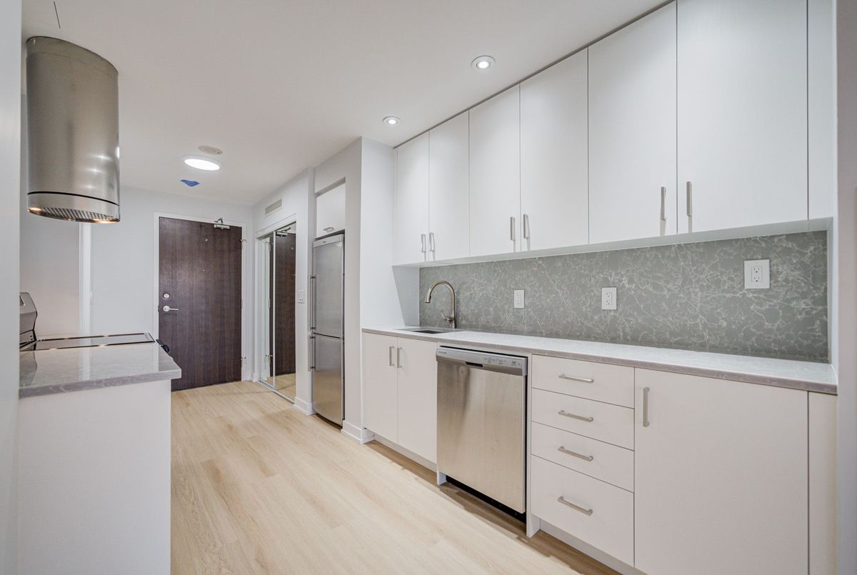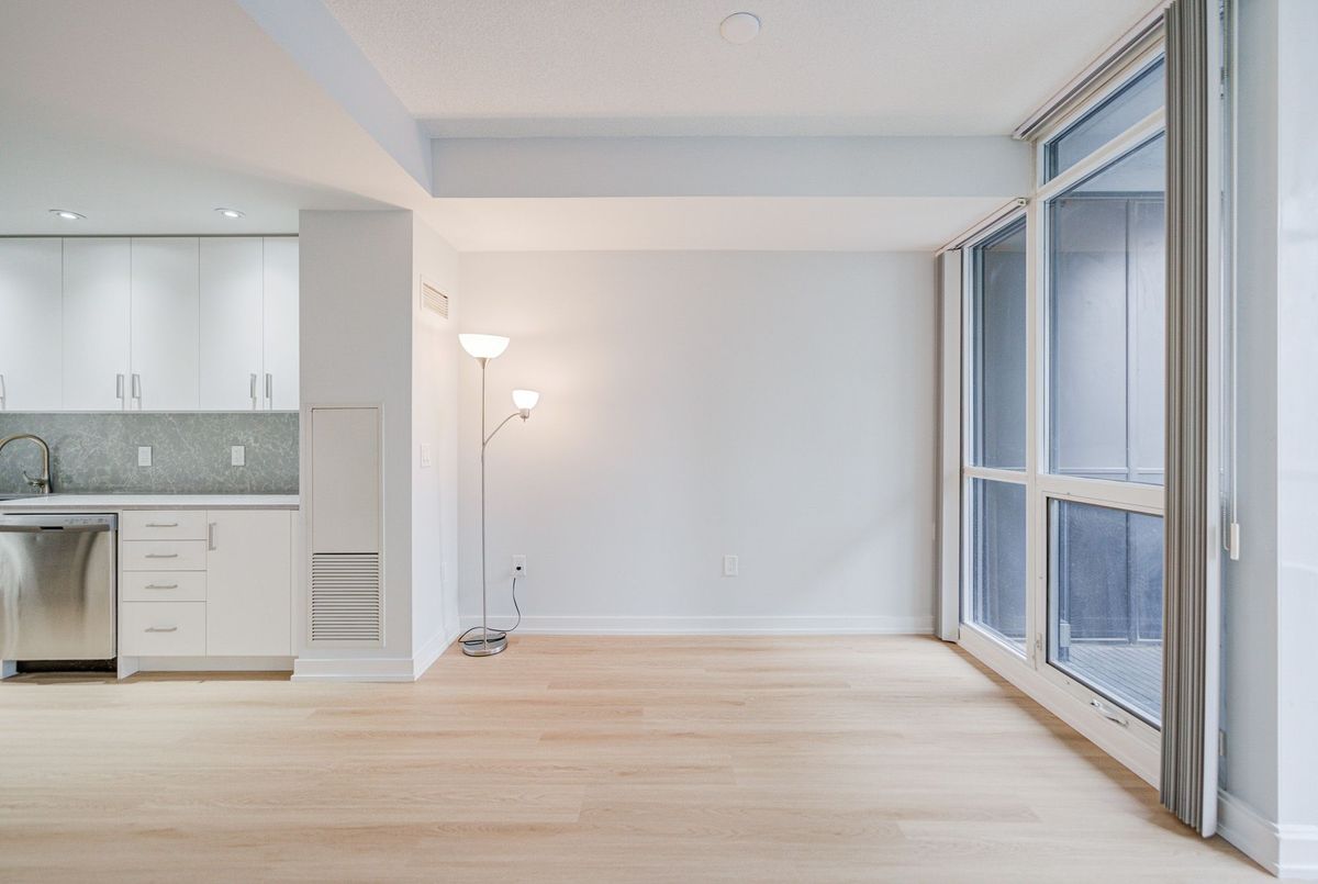 Welcome to Panorama Condos. Just Steps from Toronto's Waterfront. Spacious Open Concept Living with a Functional Layout and Southern Exposure. The Wide Galley Kitchen with New Quartz Countertops, New Cabinet Doors, Stainless Steel Appliances and Plenty of Storage Opens into a Cozy Dining Area and Spacious Living Room Large Enough to Set Up a Home Office Corner. Freshly Painted with New Upgraded Luxury Vinyl Flooring Creates a Modern Freshness. Floor to Ceiling Windows Welcome Ample Sunlight Along With a Cozy Balcony Where you can Start your Day or Take Time to Relax at the End of a Busy Day. The Spacious Bedroom with Glass Sliding Door has Ample Storage with 2 Large Mirrored Closets and Private Access to the Modern 3pc Bathroom. Panorama Condos Boasts Tons Of Fantastic Amenities, Including A Rooftop Deck With Incredible Views Of The City And Lake Ontario. Amenities also Include 24/7 Concierge, Gym, Rooftop Deck W/Hot Tub And Bbq Pit, Media Room, And More! Just Steps To TTC, LCBO, Groceries, Waterfront, And Many Parks. A Great Place to call Home!