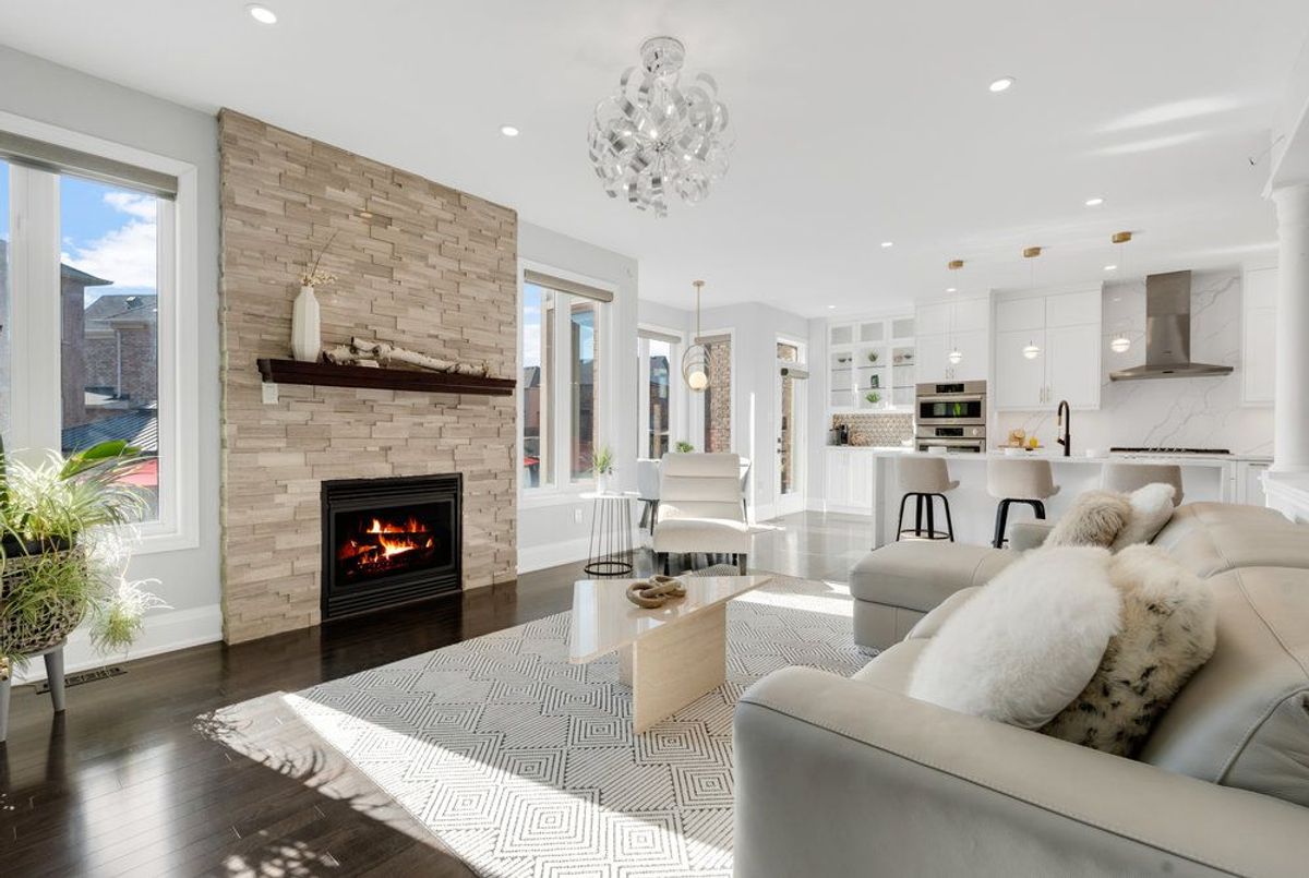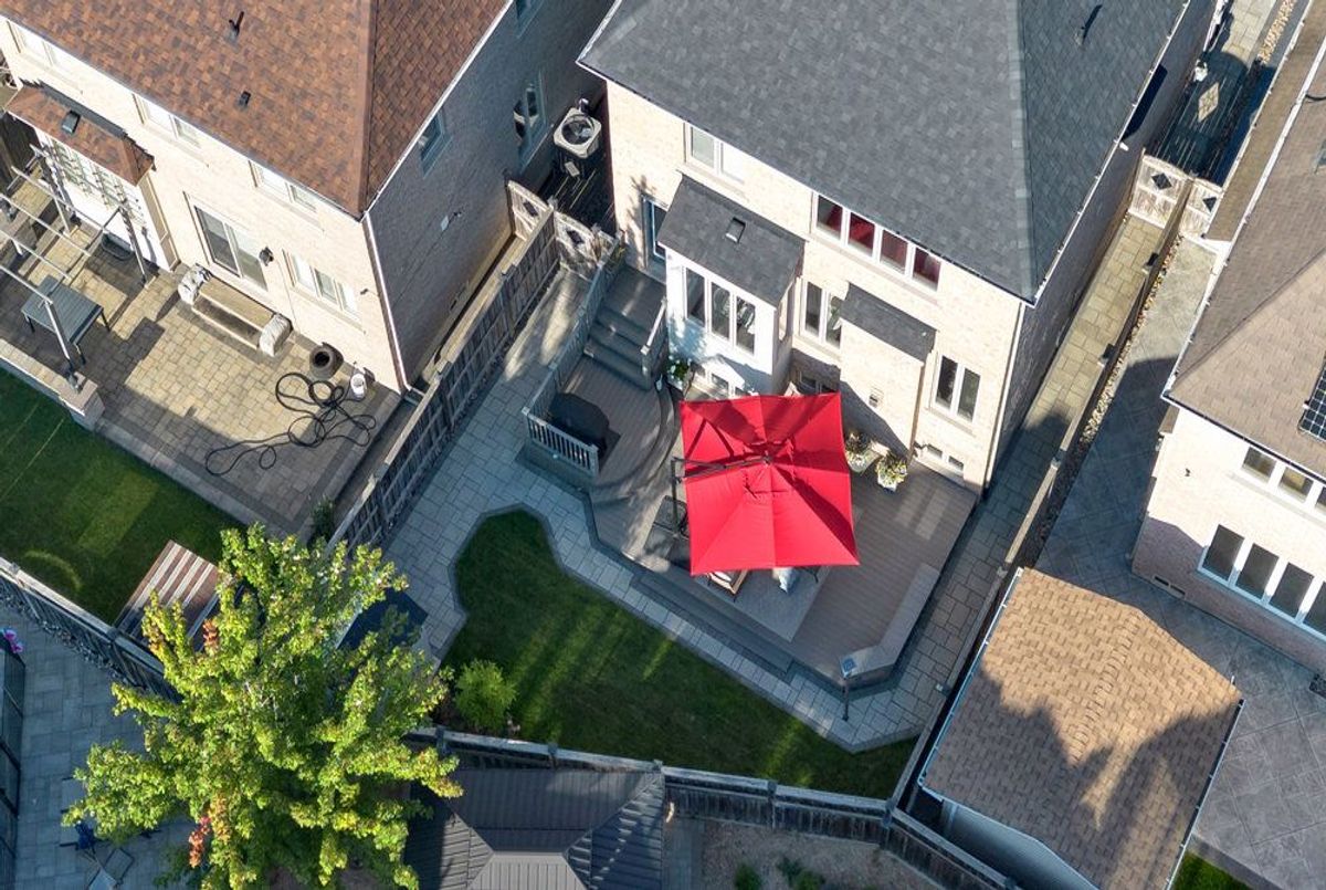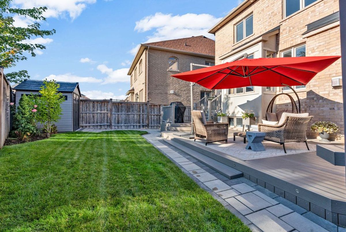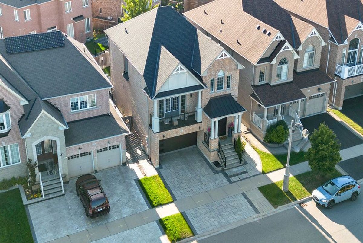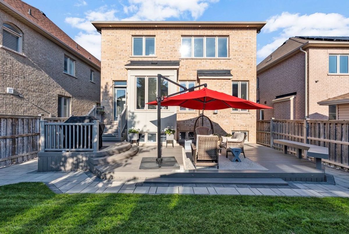 Absolutely stunning and fully upgraded 4-bedroom home featuring 9' ceilings on the main floor, a professionally designed eat-in kitchen with quartz countertops, a striking waterfall island, built-in appliances, and a bright breakfast area that walks out to a gorgeous composite deck. Recent upgrades include a new garage door and opener, a brand-new front door, refurbished interlocking, fresh paint throughout, and $50K in renovated bathrooms with spa-like finishes. Approximate 2500sqft. Enjoy hardwood floors, pot lights, two fireplaces, and a Great Room with a soaring 14' vaulted ceiling and walkout to a private balcony. The primary suite offers a walk-in closet and a beautifully updated 4-piece ensuite. Additional features include a gas line for a BBQ and an in-ground sprinkler system, ensuring a lush, well-maintained yard. For added peace of mind, the home comes with a brand-new fridge and washer/dryer. Still under warranty (Fridge until October 4, 2026, and Washer & Dryer until February 22, 2027). Located minutes from the GO station, parks, schools, library, and with easy access to Hwy 407/404, this move-in-ready home is an absolute must-see!