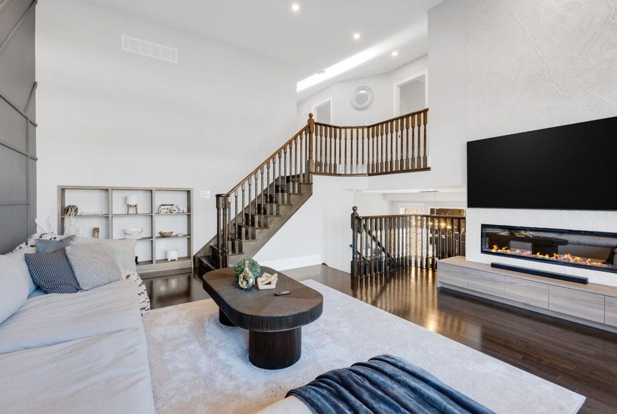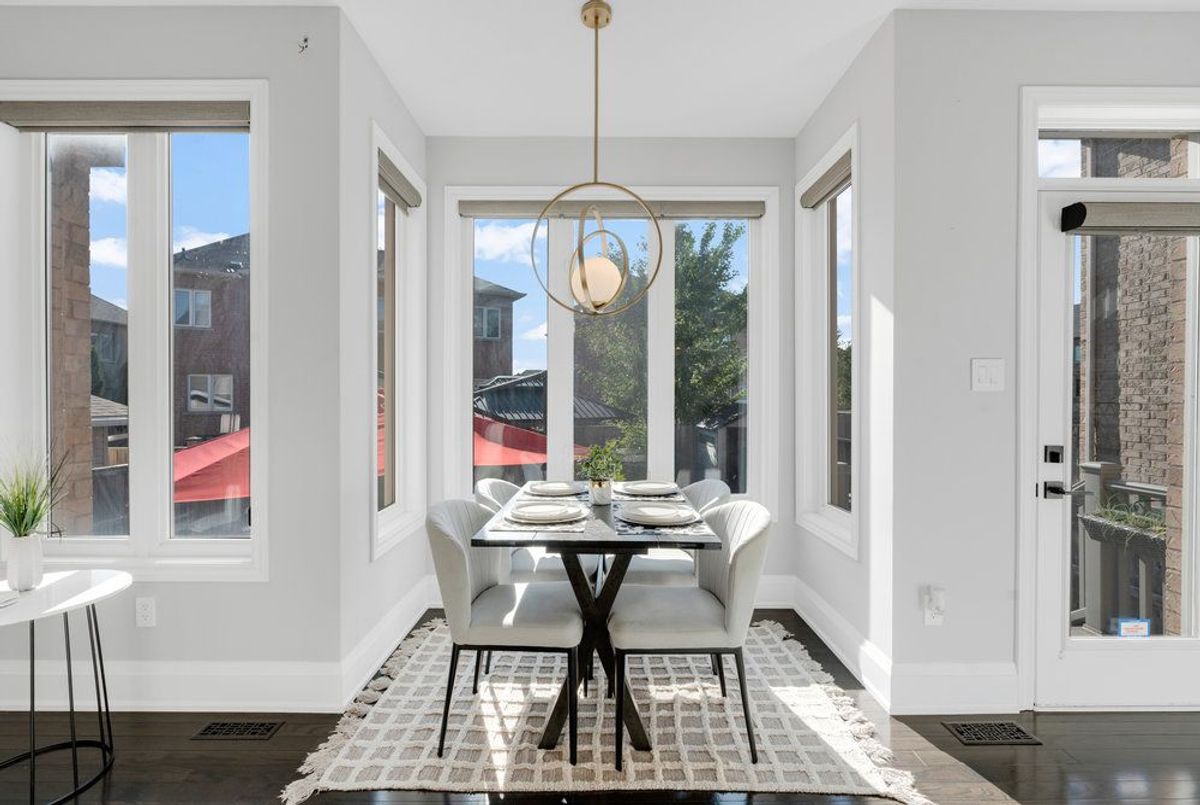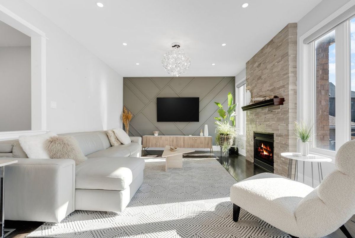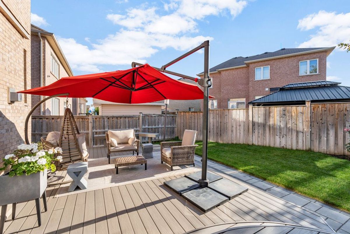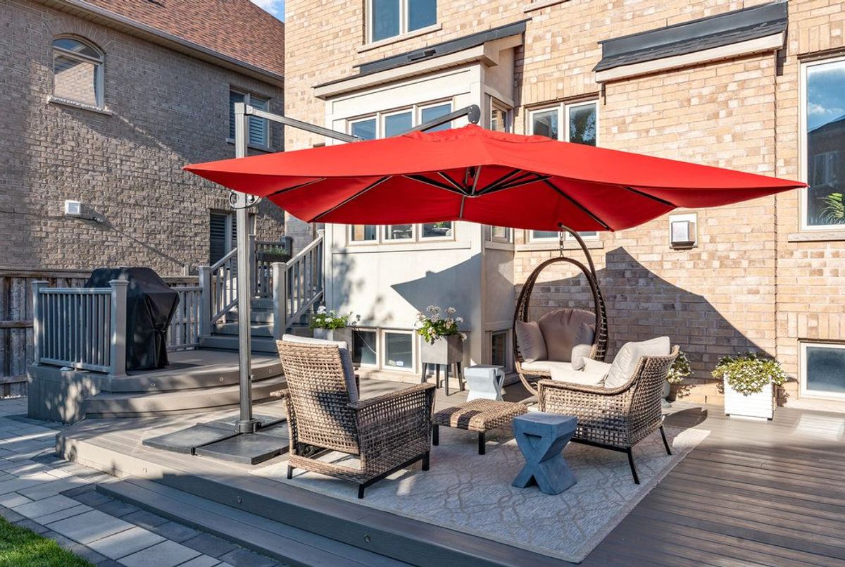 Absolutely stunning and fully upgraded 4-bedroom home featuring 9' ceilings on the main floor, a professionally designed eat-in kitchen with quartz countertops, a striking waterfall island, built-in appliances, and a bright breakfast area that walks out to a gorgeous composite deck. Recent upgrades include a new garage door and opener, a brand-new front door, refurbished interlocking, fresh paint throughout, and $50K in renovated bathrooms with spa-like finishes. Approximate 2500sqft. Enjoy hardwood floors, pot lights, two fireplaces, and a Great Room with a soaring 14' vaulted ceiling and walkout to a private balcony. The primary suite offers a walk-in closet and a beautifully updated 4-piece ensuite. Additional features include a gas line for a BBQ and an in-ground sprinkler system, ensuring a lush, well-maintained yard. For added peace of mind, the home comes with a brand-new fridge and washer/dryer. Still under warranty (Fridge until October 4, 2026, and Washer & Dryer until February 22, 2027). Located minutes from the GO station, parks, schools, library, and with easy access to Hwy 407/404, this move-in-ready home is an absolute must-see!