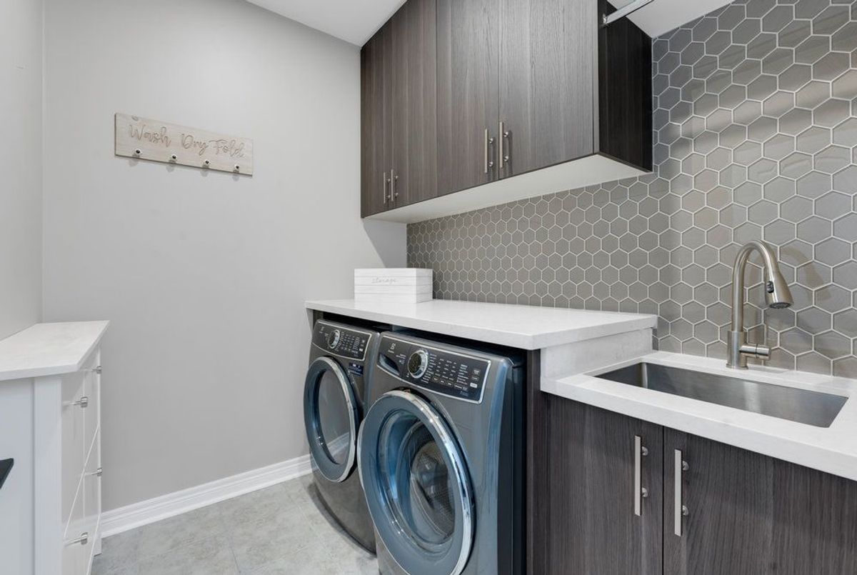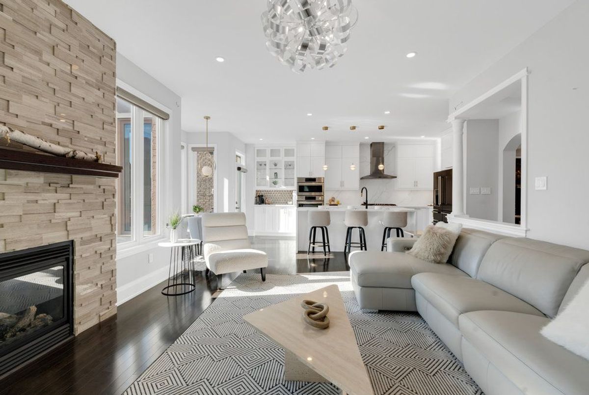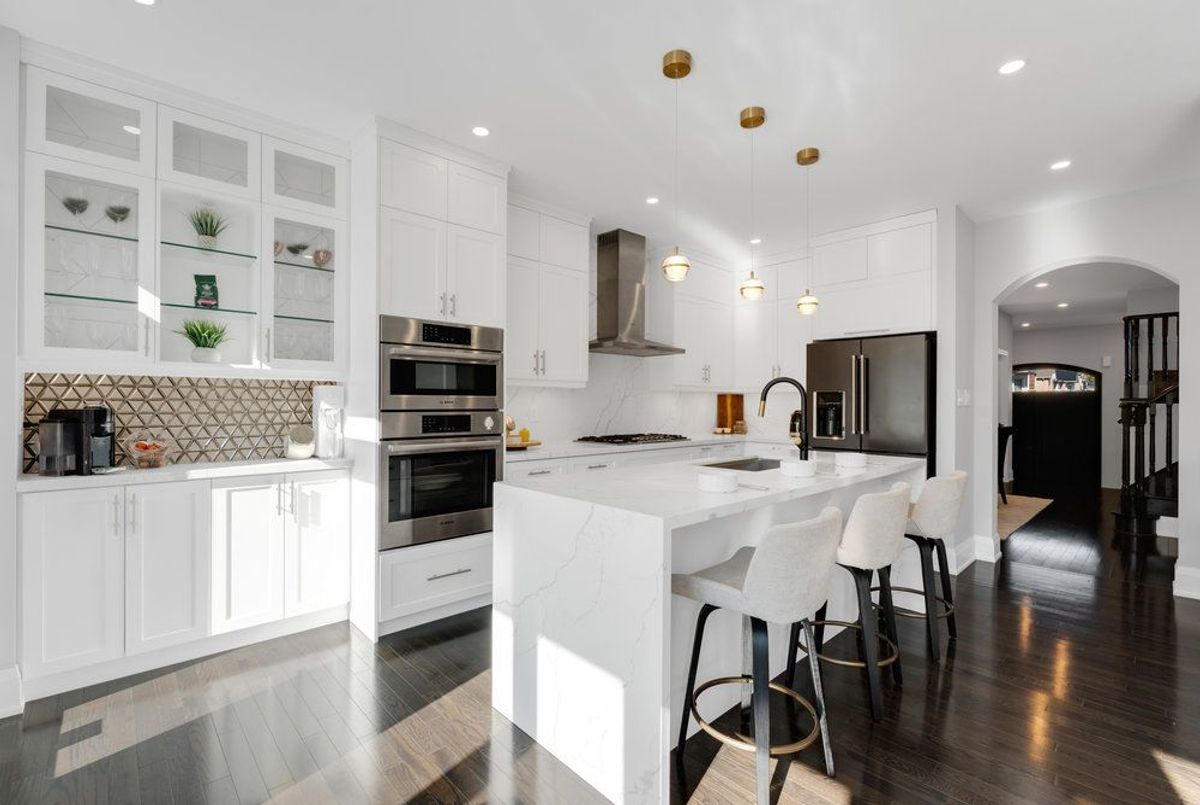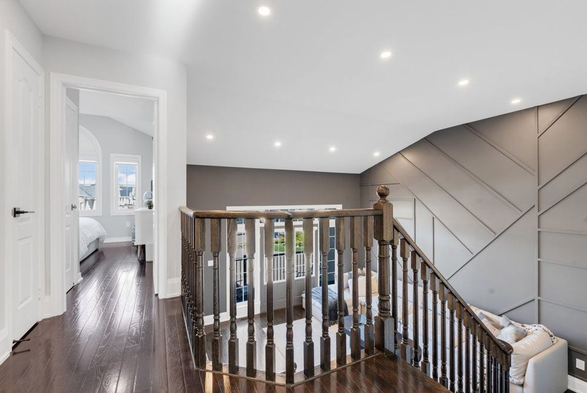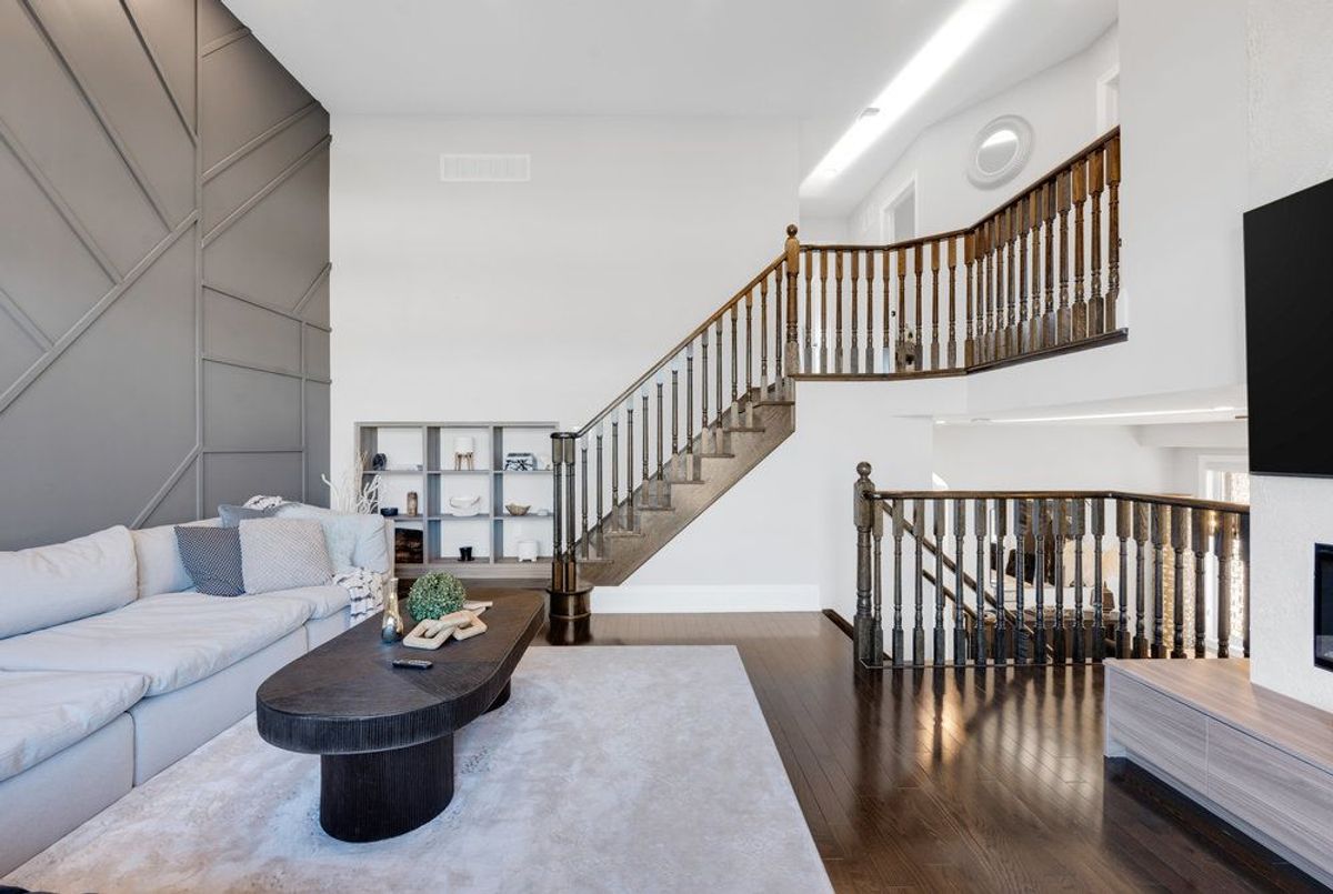 Absolutely stunning and fully upgraded 4-bedroom home featuring 9' ceilings on the main floor, a professionally designed eat-in kitchen with quartz countertops, a striking waterfall island, built-in appliances, and a bright breakfast area that walks out to a gorgeous composite deck. Recent upgrades include a new garage door and opener, a brand-new front door, refurbished interlocking, fresh paint throughout, and $50K in renovated bathrooms with spa-like finishes. Approximate 2500sqft. Enjoy hardwood floors, pot lights, two fireplaces, and a Great Room with a soaring 14' vaulted ceiling and walkout to a private balcony. The primary suite offers a walk-in closet and a beautifully updated 4-piece ensuite. Additional features include a gas line for a BBQ and an in-ground sprinkler system, ensuring a lush, well-maintained yard. For added peace of mind, the home comes with a brand-new fridge and washer/dryer. Still under warranty (Fridge until October 4, 2026, and Washer & Dryer until February 22, 2027). Located minutes from the GO station, parks, schools, library, and with easy access to Hwy 407/404, this move-in-ready home is an absolute must-see!
