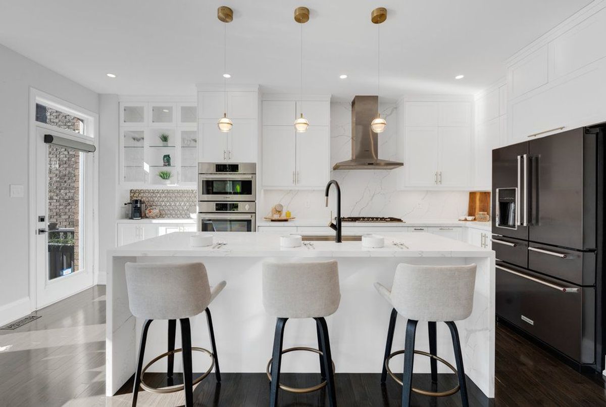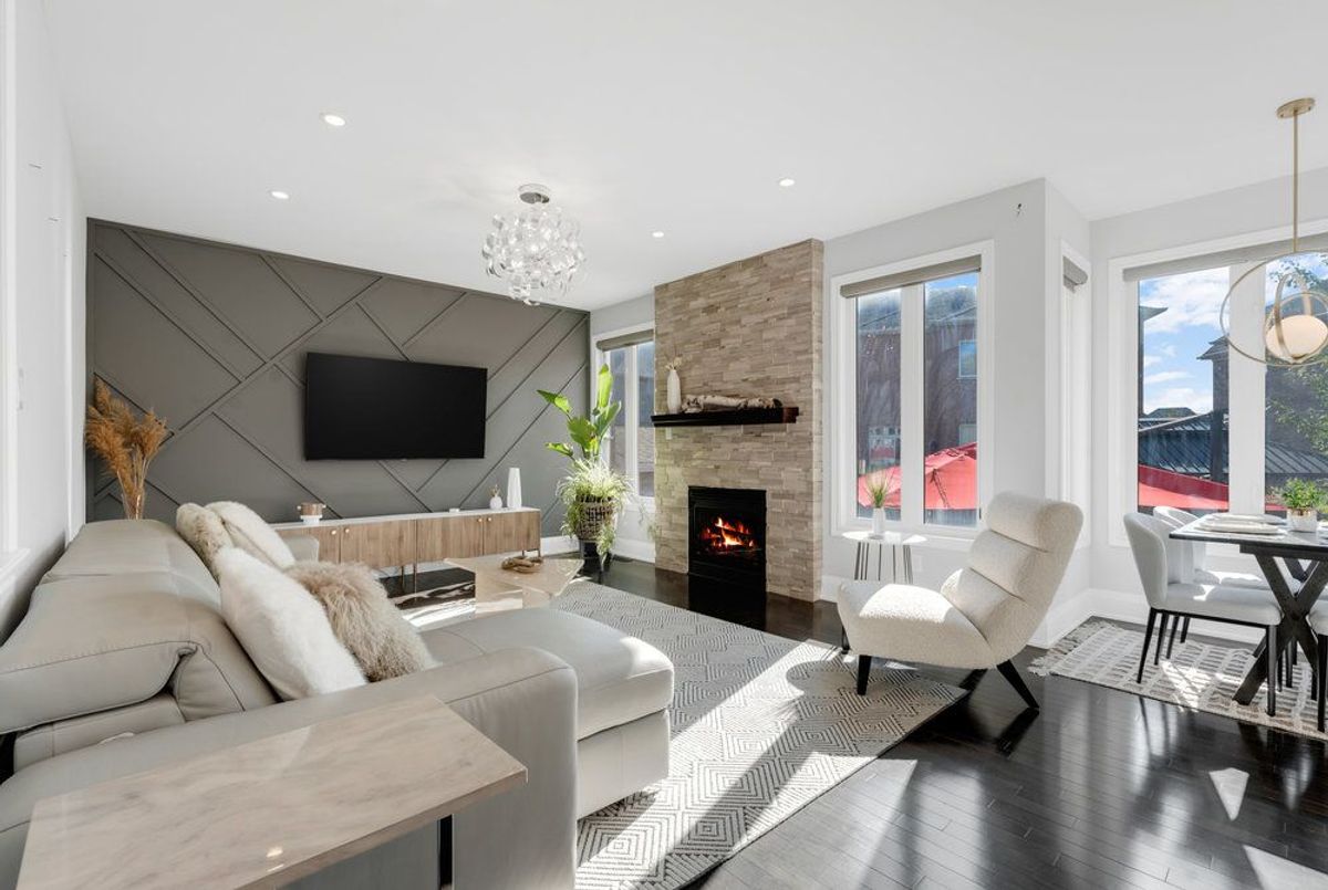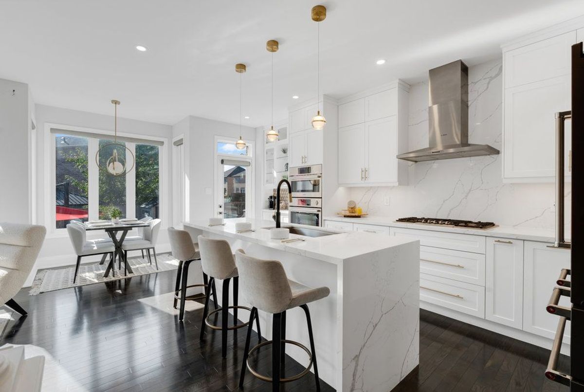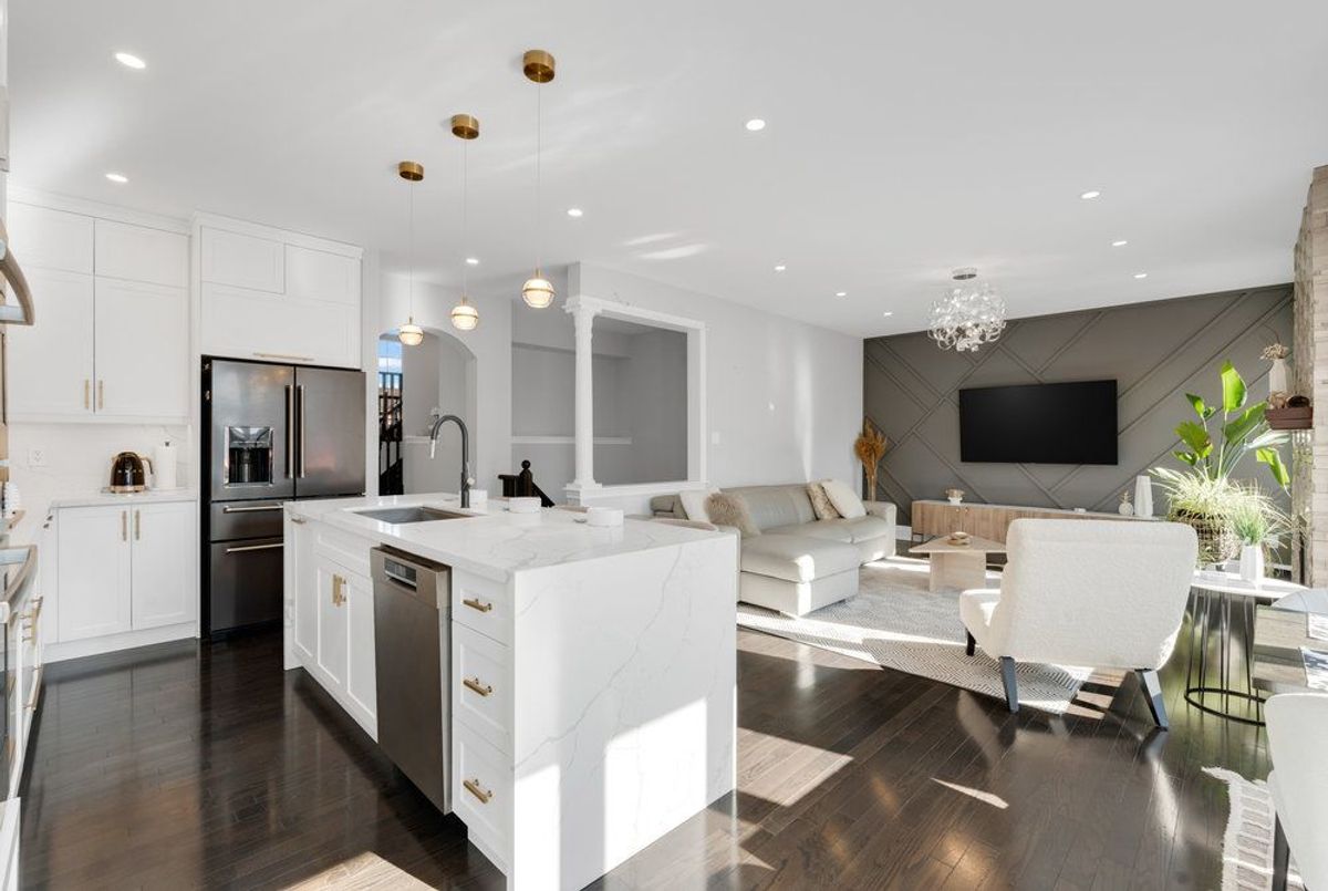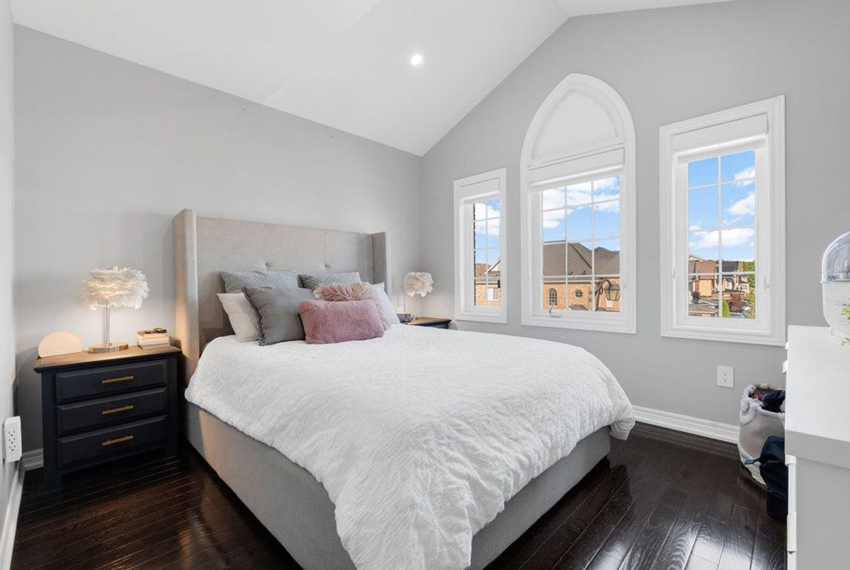 Absolutely stunning and fully upgraded 4-bedroom home featuring 9' ceilings on the main floor, a professionally designed eat-in kitchen with quartz countertops, a striking waterfall island, built-in appliances, and a bright breakfast area that walks out to a gorgeous composite deck. Recent upgrades include a new garage door and opener, a brand-new front door, refurbished interlocking, fresh paint throughout, and $50K in renovated bathrooms with spa-like finishes. Approximate 2500sqft. Enjoy hardwood floors, pot lights, two fireplaces, and a Great Room with a soaring 14' vaulted ceiling and walkout to a private balcony. The primary suite offers a walk-in closet and a beautifully updated 4-piece ensuite. Additional features include a gas line for a BBQ and an in-ground sprinkler system, ensuring a lush, well-maintained yard. For added peace of mind, the home comes with a brand-new fridge and washer/dryer. Still under warranty (Fridge until October 4, 2026, and Washer & Dryer until February 22, 2027). Located minutes from the GO station, parks, schools, library, and with easy access to Hwy 407/404, this move-in-ready home is an absolute must-see!