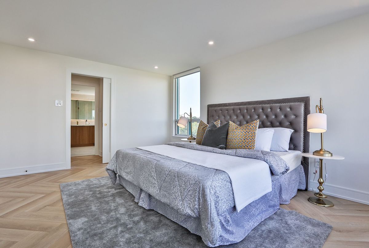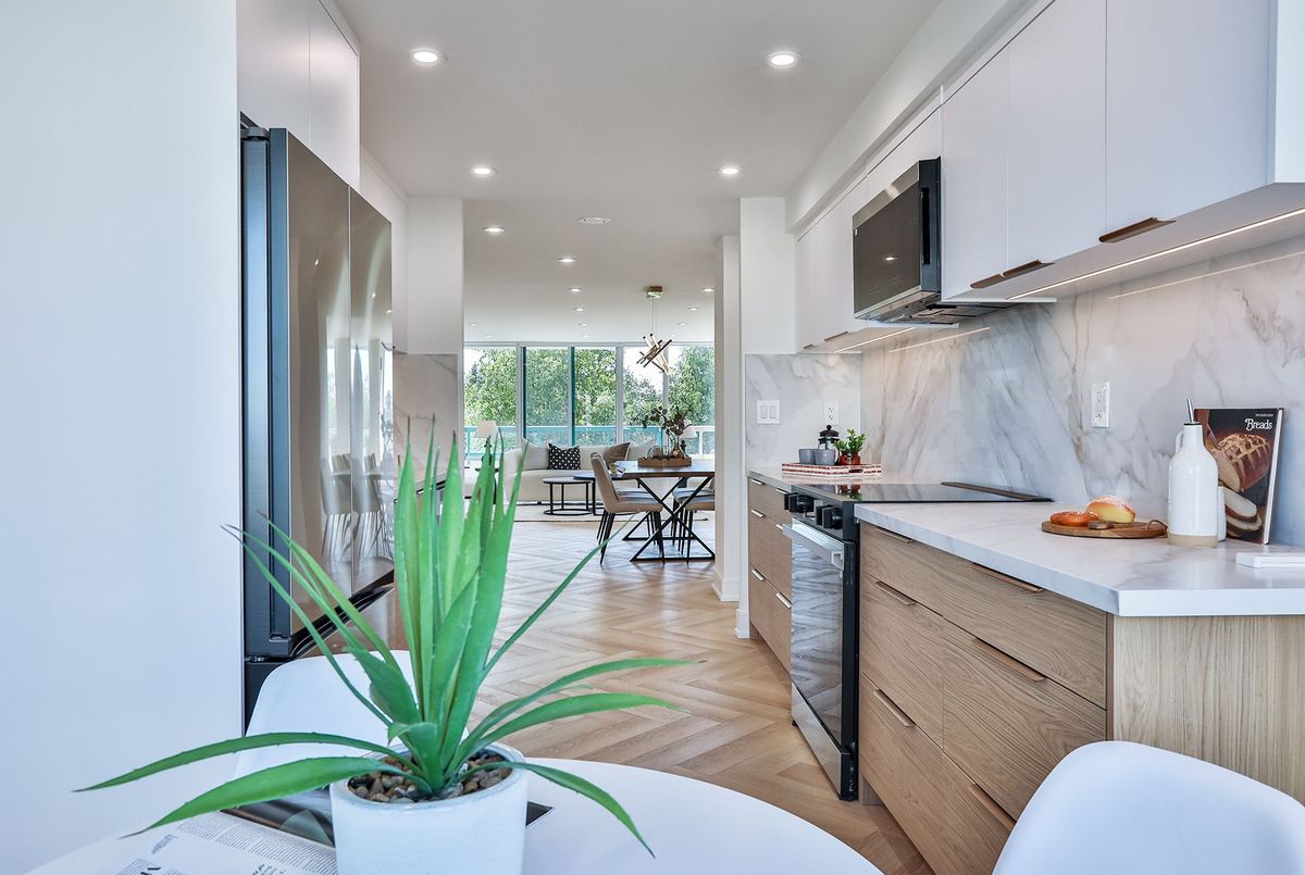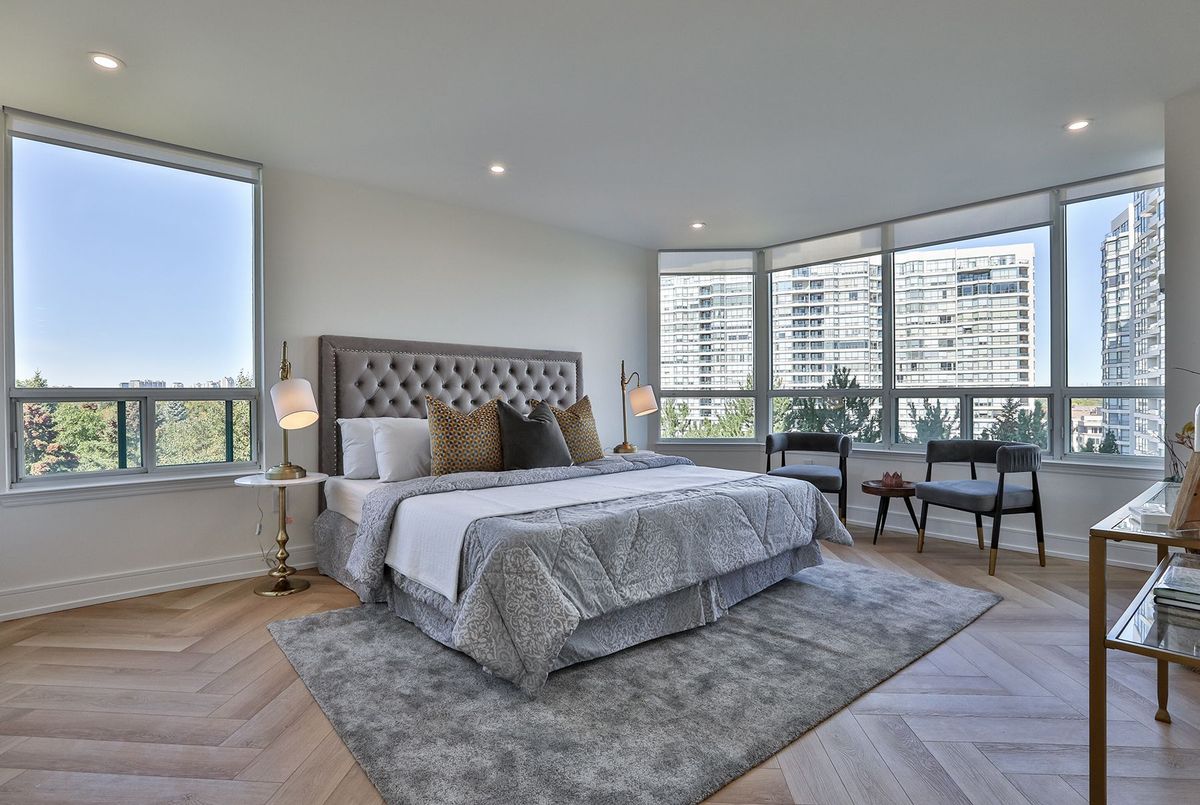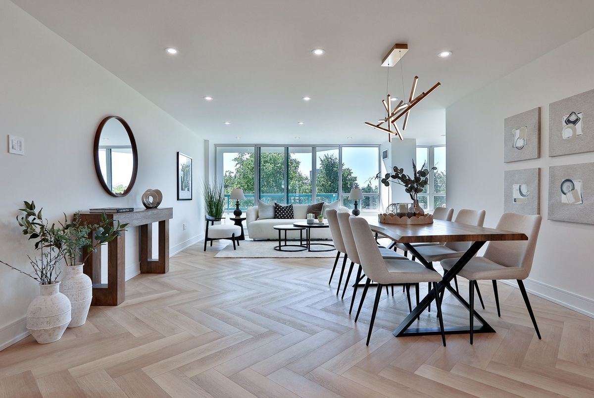 Feels like a bungalow over the treetops! One of the largest suites in the luxurious building. This totally remodelled 2+1 offers over 1500 sq. ft. of refined living with two parking spaces. Sun-filled with views in 3 directions (South, West & North), it features a spacious, functional layout, an eat-in kitchen, and two spacious balconies. The large primary suite boasts a five-piece ensuite and a large walk in closet, while the second bedroom also enjoys a balcony walk-out with close access to a 4-piece bath. Additional highlights include a generous foyer closet, a separate laundry area, and expansive windows that flood the space with natural light, motorized shades, all brand new SS appliances, a modern kitchen with quartz countertop, Herringbone flooring and pot lights throughout. Maintenance covers all utilities, high-speed internet & cable. Enjoy resort-style amenities: 24-hr concierge, party room, library, outdoor pool, tennis court, squash and gym. Just a few minutes walk to transit, restaurants, and schools a perfect blend of luxury and lifestyle!