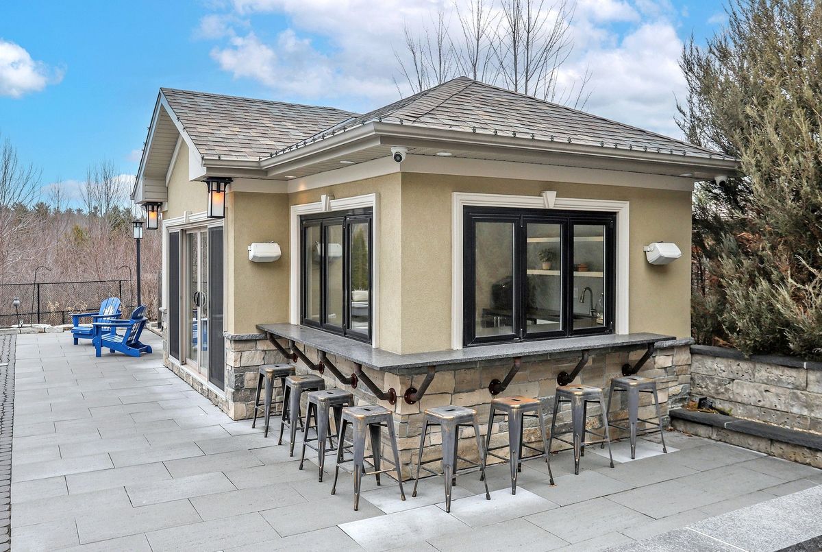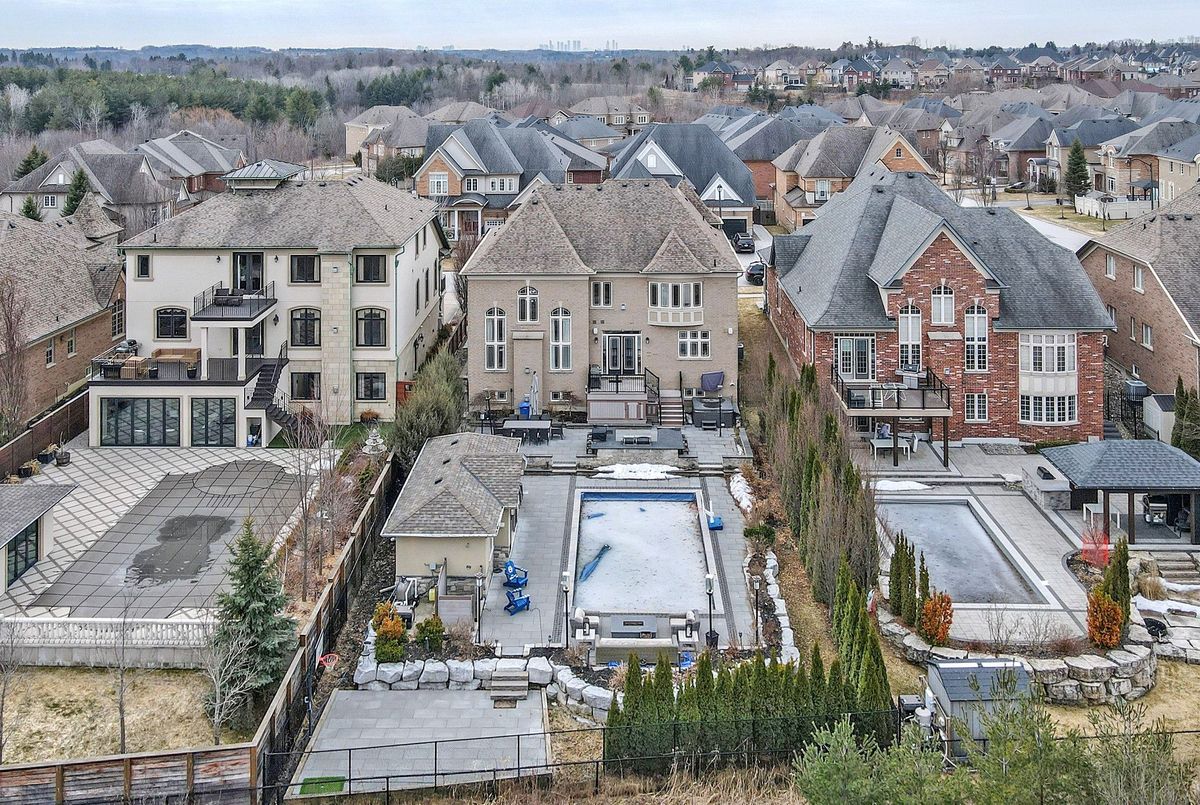 Discover This Exceptional Executive Home Offering Approx. 7,800 Sqft of Refined Living Space & A Private Outdoor Retreat Backing Onto Conservation In Prestigious Nobleton! A striking exterior of stone, stucco and brick introduces a home defined by timeless elegance and architectural detail. Soaring ceilings, intricate millwork, crown moulding & expansive windows flood the space with natural light. The grand foyer opens to sophisticated principal rooms with hardwood flooring, a waffle ceiling, decorative columns & custom finishes. The chef-inspired kitchen is equipped with Sub-Zero refrigeration, a 6-burner gas range, granite countertops, a large centre island, walk-in pantry & walkout to a composite deck. Overlooking the kitchen, the dramatic 2-storey family room offers a gas fireplace, statement lighting & open-to-above design. A main floor office adds flexibility for work or guests. Upstairs, hardwood flooring continues throughout with wrought iron railings & open balcony views. The luxurious primary suite features a fireplace, built-in speakers, dual walk-in closets & a spa-like ensuite with soaker tub, glass shower & double vanity. All additional bedrooms are generously sized with access to full bathrooms. The finished basement with approx. 10 ft ceilings is designed for entertaining, complete with a rec room, full bar, gas fireplace, projector & screen, guest bedroom & bath w/heated floor. Step outside to a resort-style backyard with tiered stone patios, in-ground pool, hot tub, outdoor kitchen & a fully finished cabana with kitchenette, fireplace, serving windows & outdoor shower! Landscape lighting, outdoor speakers & multiple seating areas complete this private outdoor retreat. Don't miss out on this rare offering combining luxury, design & lifestyle!