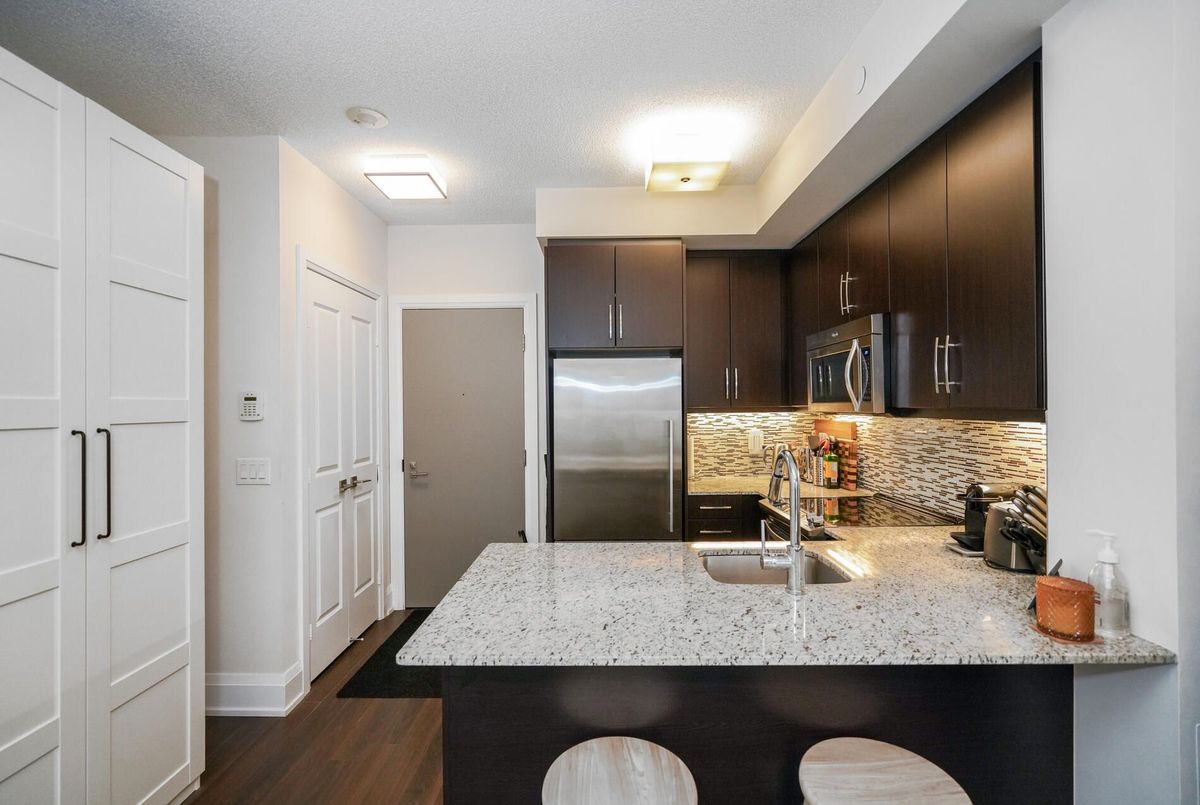 Tridel-built condominium in the prestigious Old Mill neighborhood, ideally situated at 2 Old Mill Drive were South Kingsway meets Bloor West Village. This rarely available, highly functional layout offers thoughtfully designed living space, featuring bedroom plus a versatile media area. The open-concept interior is bright and inviting, enhanced by high ceilings, pot lights granite countertops, and full sized kitchen appliances, An efficient floor plan maximizes usability while maintaining a seamless flow throughout the suite. Enjoy and exceptional Walk Score of 90, just steps to the Old Mill subway station, scenic Humber River trails, and the shops, cafes', and amenities of Bloor West Village. Building amenities include: rooftop deck and garden, 24-hour concierge, well-equipped fitness center, and meeting/party room.